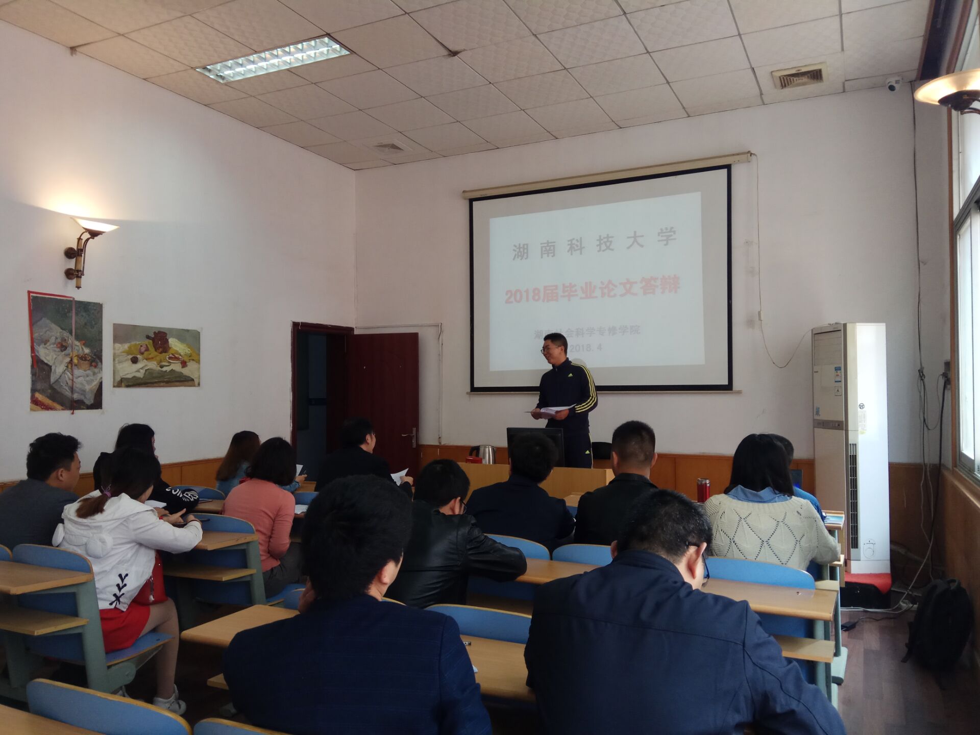 2018年4月27日上午,我校湖南社会科学专修学院函授教学站举行2018届本科毕业生论文答辩,答辩专家组由我校商学院王海峰老师和站点自聘的张老师组成,整个答辩过程井然有序,站点组织到位,学员参与率高,本次毕业论文答辩工作顺利完成。